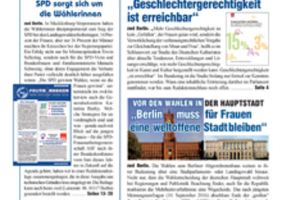 Am 18. September wird in Berlin ein neues Abgeordnetenhaus gewählt. Das zwd-POLITIKMAGAZIN blickt auf die vergangene Legislaturperiode zurück und zieht eine Bilanz der gleichstellungs-, bildungs- und kulturpolitischen Arbeit der Großen Koalition in der Hauptstadt.