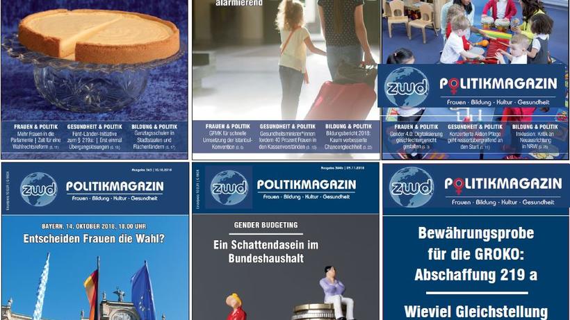Was wird aus den wichtigen frauen- und gleichstellungspolitischen Reformprojekten dieser Legislaturperiode: Wahlrechtsreform, Frauenhausfinanzierung, Kita-Pflicht, Gender Budgeting, Streichung des § 219a? Das zwd-POLITIKMAGAZIN hat in den letzten fünf Ausgaben ausführlich darüber berichtet. Ein Kompendium für alle, die gleichstellungspolitisch engagiert sind. Sichern Sie sich diese Ausgaben (360 bis 364) zusammen mit der aktuellen Ausgabe 365! im Paket zum einmaligen Probierpreis für Nichtabonnent*innen von 30 Euro!