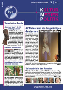 Das zwd-Magazin KULTUR.MEDIEN.POLITIK (K.M.P) ist im Abonnement sowie als Einzelheft zu beziehen bei der zwd-Mediengesellschaft mbH, Luisenstraße 48, 10117 Berlin (Tel. 030-22487475; Fax: 030-22487484; mail: service@zwd.info).