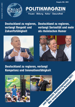 Holger H. LührigDie aktuelle Ausgaben des zwd-POLITIKMAGAZINs Nr. 386 und 387 rücken die frauen-, bildungs- und kulturpolitischen Positionen und Wahlaussagen der Parteien zur Bundestagswahl 2021 in den Mittelpunkt. Mit dem untenstehenden Link können Sie die Ausgabe 386 herunterladen..